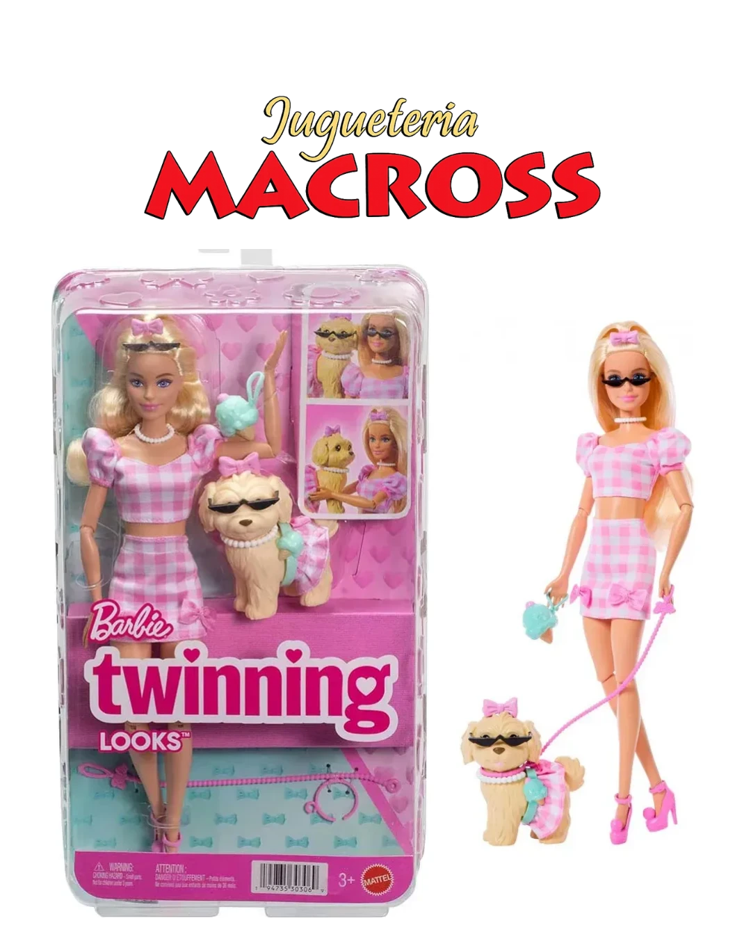 Incluye una muñeca articulada con un conjunto de cuadros rosas y un perrito a juego. Viene con 10 accesorios, incluyendo lentes de sol para ambos, collares y bolsos. Recomendada a patir de 3 años-