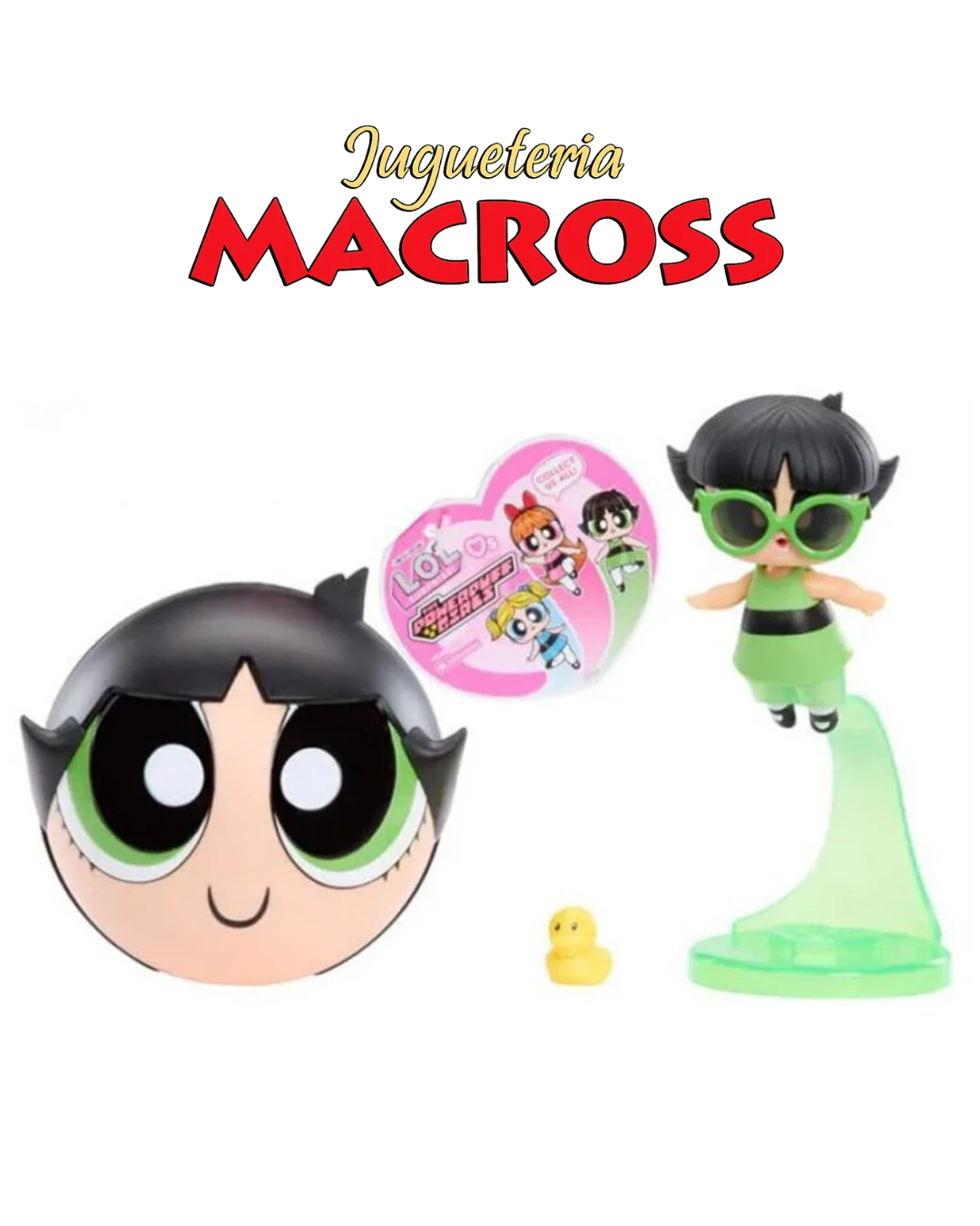 La muñeca LOL Surprise de Bellota de Las Chicas Superpoderosas es una edición especial que fusiona el estilo fashionista de la marca con la personalidad ruda y decidida del personaje. Disponible en versiones de colección o en las muñecas grandes, incluye accesorios temáticos, ropa intercambiable y destaca por su atuendo verde y negro.