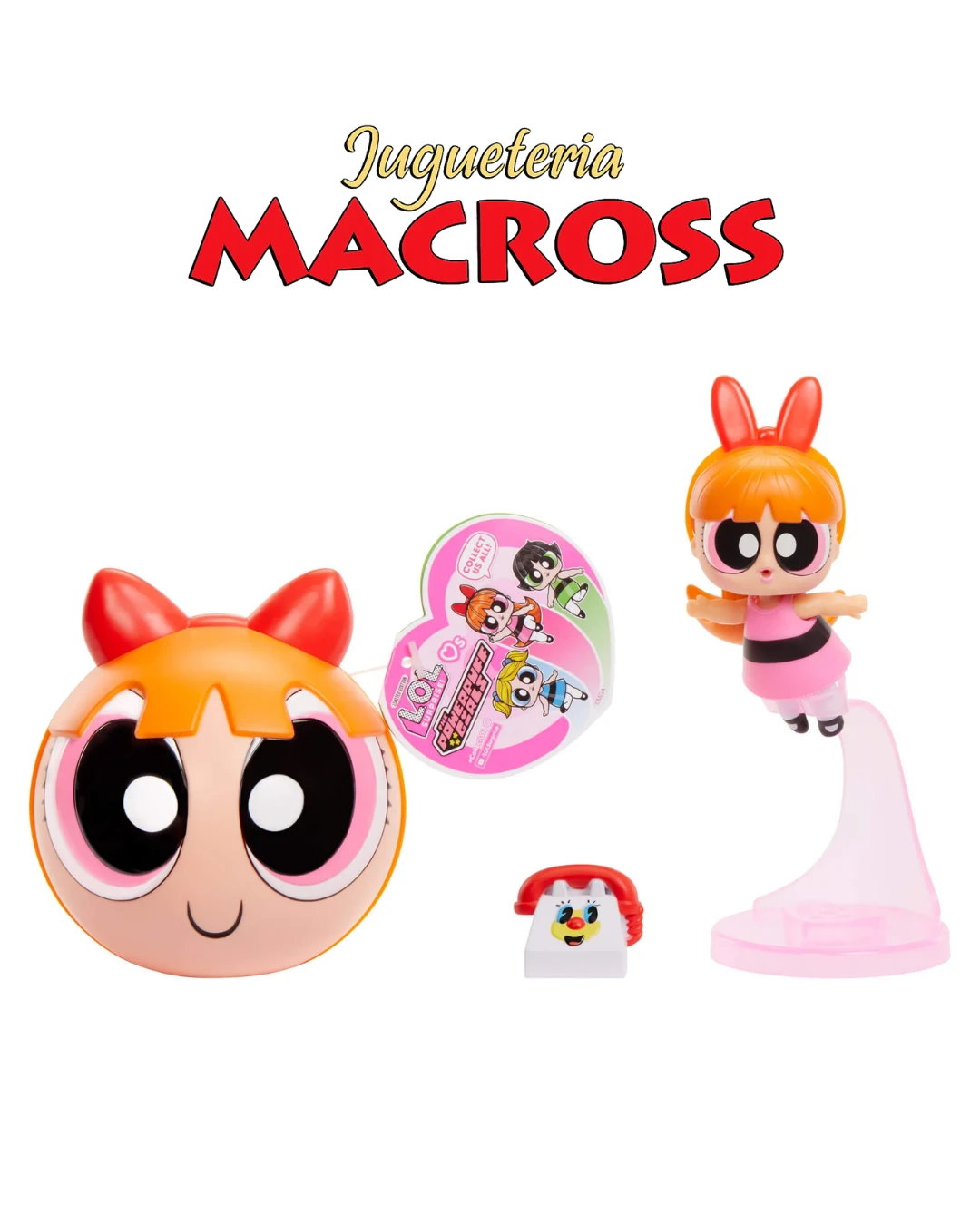 La muñeca LOL Surprise x Las Chicas Superpoderosas Bombon (Blossom) es una figura coleccionable de edición especial que fusiona el estilo fashionista de LOL con la líder del icónico trío animado. Incluye accesorios temáticos, ropa detallada (blusa rosa, pantalones rojos) y captura la esencia carismática del personaje.