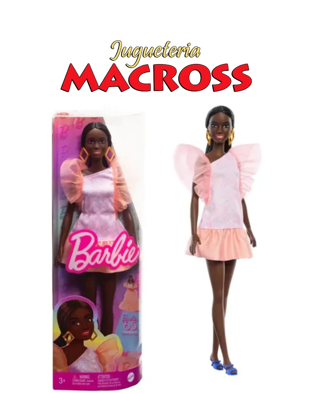 Muñeca Mattel Barbie Fashionistas #216 con Vestido Durazno, un modelo coleccionable que celebra el 65 aniversario de la marca. Se caracteriza por rendir homenaje al icónico estilo "Peaches 'n' Cream" de 1984 con un diseño moderno