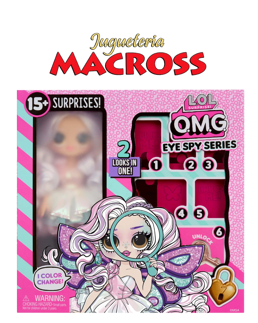 Las muñecas L.O.L. Surprise! OMG Eye Spy Series son figuras de moda de 20 cm con un enfoque interactivo de misterio. Incluyen más de 10 sorpresas, destacando por sus atuendos detallados, accesorios únicos y una función de cambio de color al sumergirlas en agua, incluyendo opciones de 4 personajes diferentes: Espía, Superhéroe, Hada y Estrella de Rock