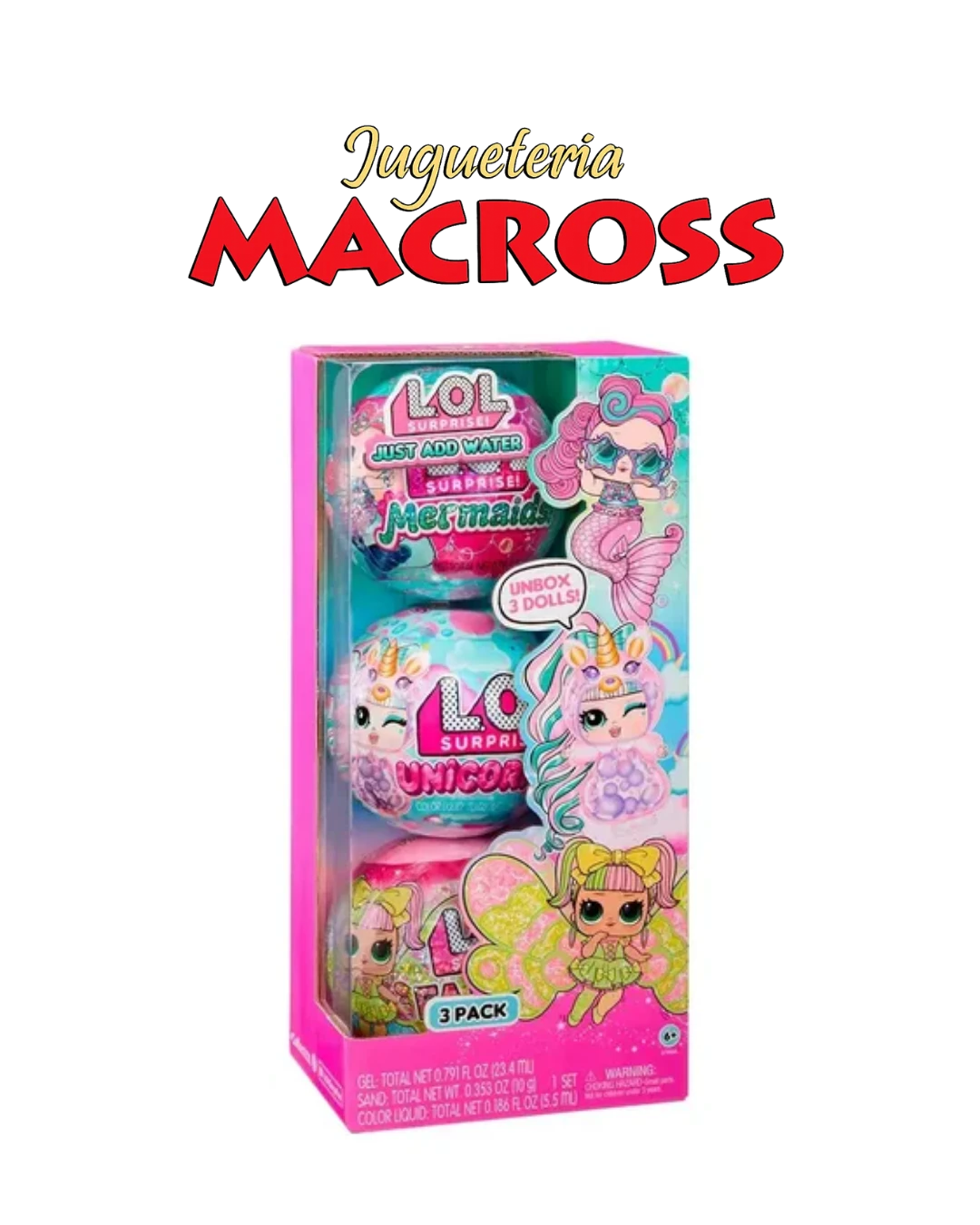 El set L.O.L. Surprise! Pack de 3 Muñecas (Edición Especial Agregale Agua) es un producto de colección que ofrece una experiencia de unboxing centrada en temáticas de fantasía. A continuación se detalla su descripción