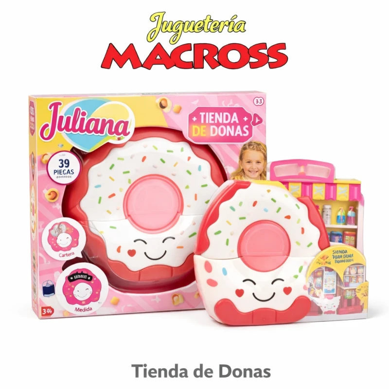 Divertido set de juego para armar una tienda de donas. Incluye valijita con forma de dona y múltiples accesorios para el juego simbólico. Ideal para fomentar la creatividad, la imaginación y el juego de roles. Viene en práctica presentación tipo cartera.